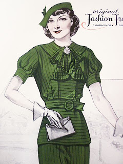 The sombre social mood was reflected in fashion colours- maroon, olive green, mauve, taupe, browns, muted blues and black were by far the most common colours seen. Women learned to make the most of what they had, updating with cheap accessories, new trims for old hats, a pair of shoe clips, a plastic brooch or borrowing a fur from a friend for a special occasion.